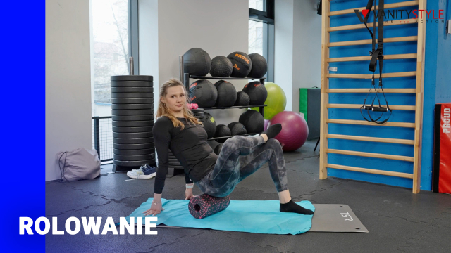 Trening rozluźniający dolne partie mięśniowe przy użyciu rollera.